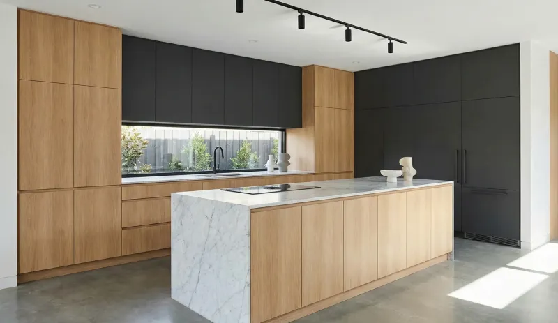 Armário planejado para forno de embutir, com linhas retas e integração precisa à marcenaria da